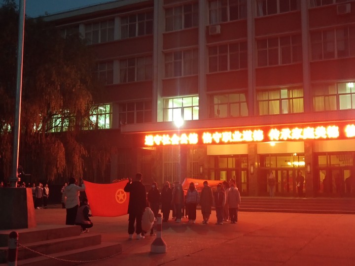 为贯彻落实习近平新时代中国特色社会主义思想,大力培育和践行社会主义核心价值观,扎实推动文明校园创建工作。2020年10月19日我学院全体师生在行政楼前举行升旗仪式暨关于关于习近平总书记致全国青联十三届全委会和全国学联二十七大贺信的学习活动。我院团员青年代表孙盼同学以“激情奋斗中绽放青春光芒”为主题倡议我院全体青年团员要不忘初心,牢记使命,锐意进取,不负韶华,把个人梦想融入时代潮流,让青春意识照亮奋进之路。活动最后凯翔老师带领团员重温入团誓词,共唱团歌。