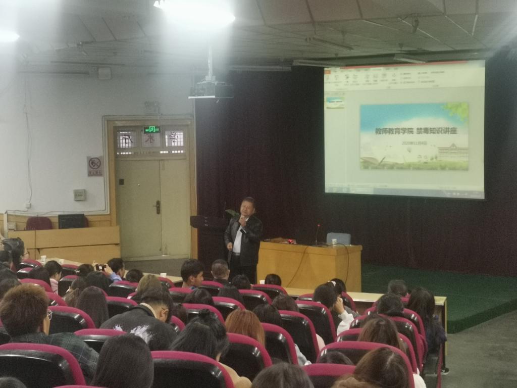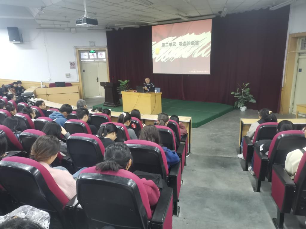 陈主任在介绍毒品的界定和分类的基础上,以戒毒所的真实案例说明吸毒不仅损坏个人健康、毁灭家庭还对社会造成危害以及戒毒之不易等道理,应加强和引导我院大学生远离毒品、谨慎交友。