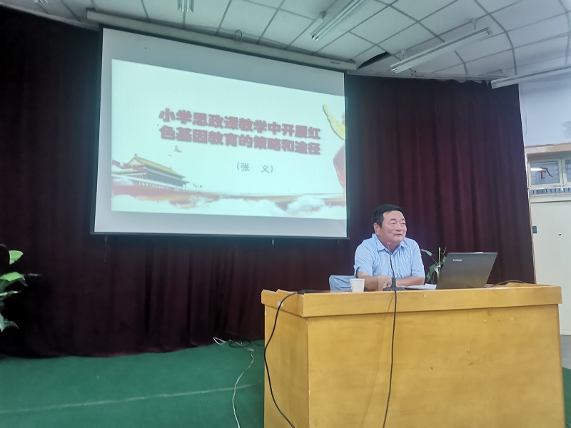 张义校长从什么是红色基因、在小学阶段开展红色基因教育的必要性、小学阶段红色基因传承教育中存在的问题、小学思政教学中红色基因传承教育的有效途径和策略四个方面展开了此次报告会。