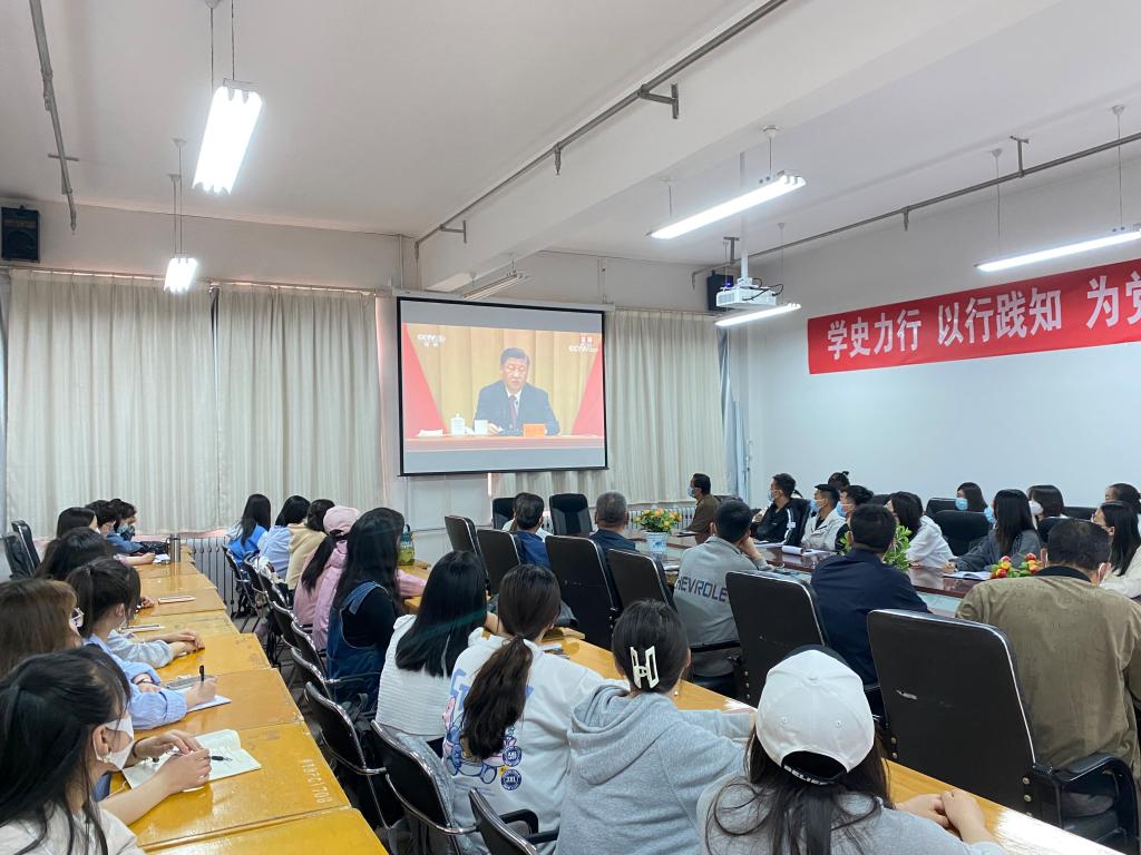 我院师生全神贯注地观看大会直播,深切感受到了习近平总书记对青年们的殷切寄语及大会热烈的氛围,并做了详细记录。参会人员表示,五四运动是我国近现代史上具有里程碑意义的重大事件,要进一步传承爱国、进步、民主、科学的五四精神,与党同心、与人民同行,为国家发展、民族复兴贡献力量。