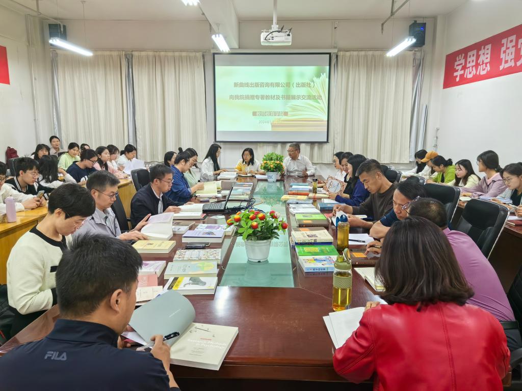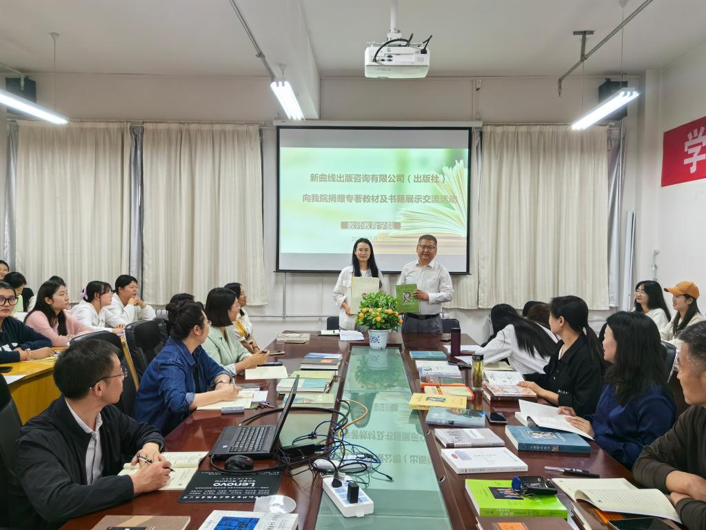 5月28日下午,北京新曲线出版咨询有限公司向tyc8722太阳集团城捐赠专著教材暨书展交流活动在学院会议室举行。新曲线出版咨询有限公司营销经理王欣宇,tyc8722太阳集团城院长雒焕国、副院长马富成、各专业负责人及部分师生代表参与了活动。活动由学院党委书记王莉教授主持。