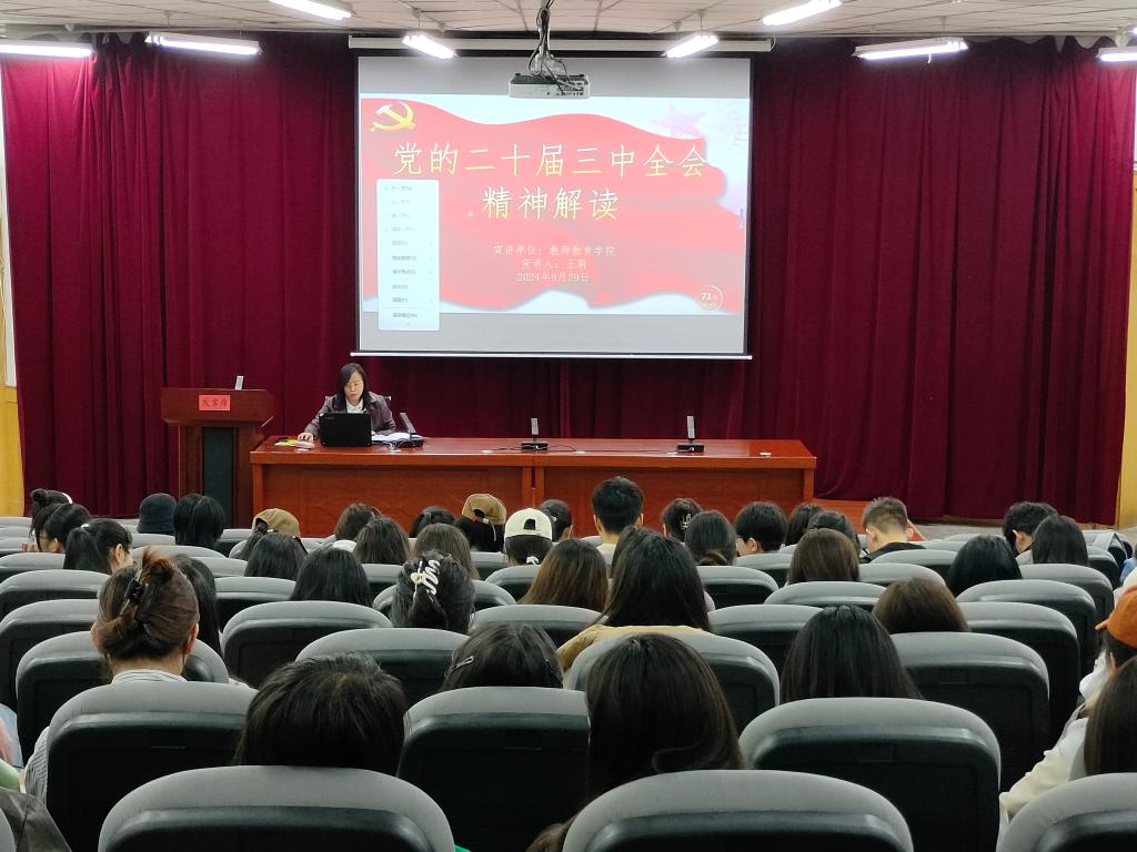 为深入学习贯彻党的二十届三中全会精神,推动学校高质量发展。9月29日下午,学院党委书记、院长作了“深刻领会党的二十届三中全会精神,勠力同心 早日建成特色鲜明的河西大学”辅导报告。2022级和2023级全体学生参加。