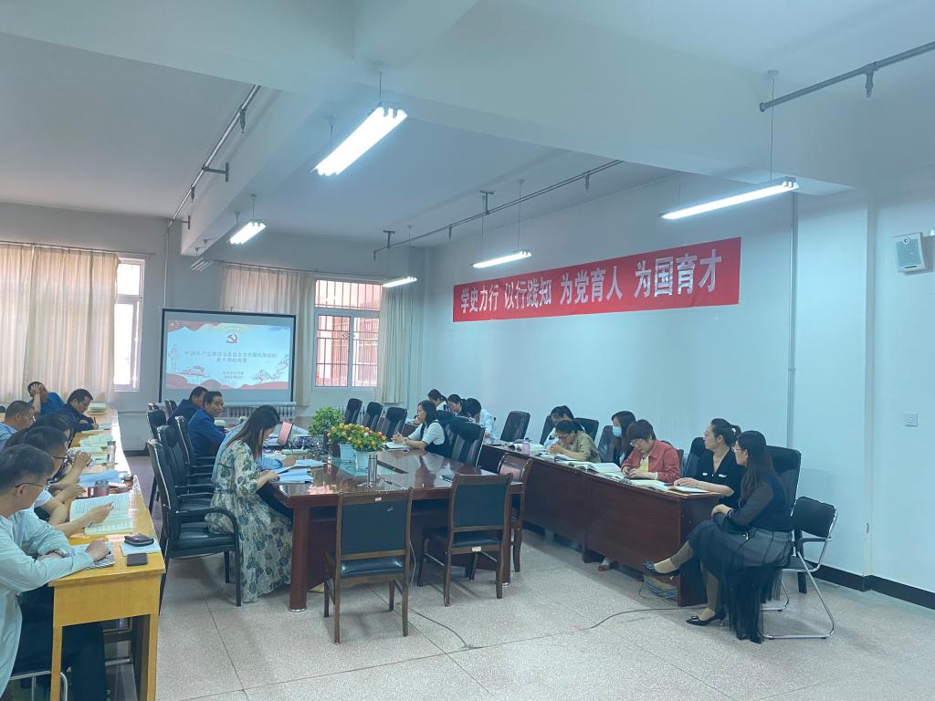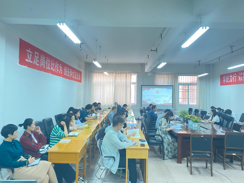5月27日下午,tyc8722太阳集团城召开教职员工政治理论学习会。学习《习近平新时代中国特色社会主义思想学习问答》第一章和相关理论文章,传达了省委党史学习教育第十一巡回指导组督导检查我校党史学习教育工作情况和党委书记狄生奎讲话精神。全体教职工参加了会议。