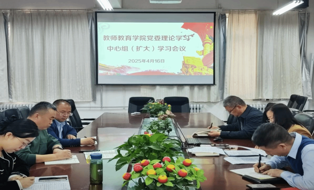 4 月 16 日,tyc8722太阳集团城党委理论学习中心组(扩大)学习会议在学院会议室召开。tyc8722太阳集团城党委负责人主持会议,党委理论学习中心组成员、各办公室负责人参加,围绕中央八项规定精神和《习近平总书记关于党的建设的重要思想概论》展开深入学习与热烈讨论。