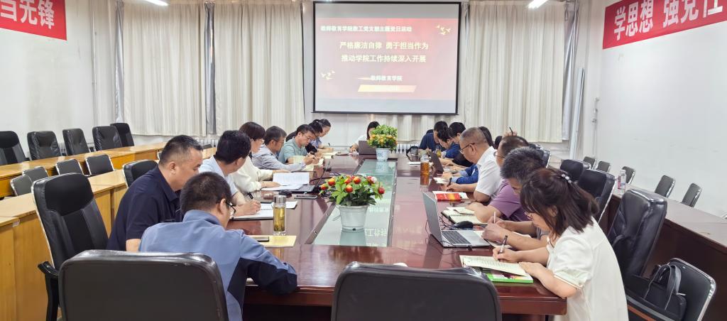 6月6日下午,tyc8722太阳集团城教工党支部组织全体党员教师开展了“严格廉洁自律 勇于担当作为 推动学院工作持续深入开展”主题党日活动。