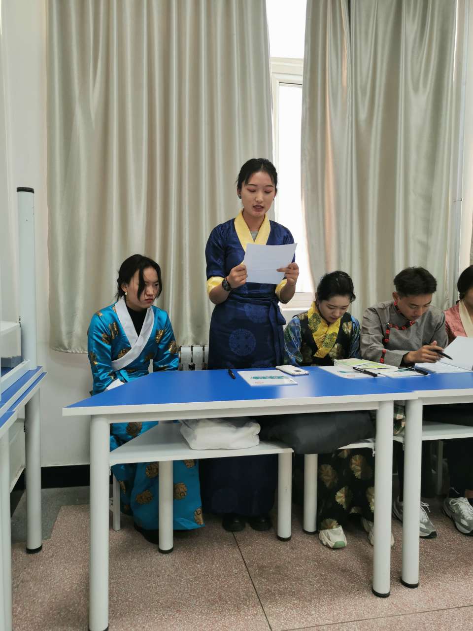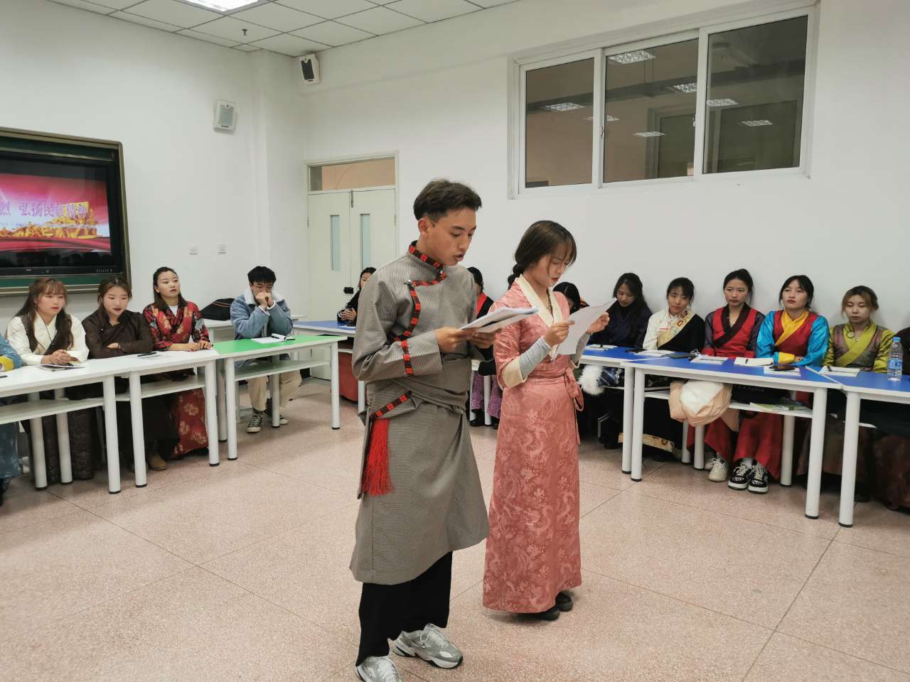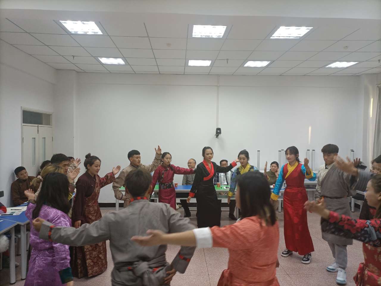 同学们分别以心得体会、诗歌朗诵和民族舞蹈三种形式进行汇报,汇报结束后,张成杰副部长对本次班会进行总结。张部长充分肯定了本次实践教学取得的成果,对同学们形式多样的汇报给予鼓励,同时向同学们讲述了我校创建全国民族团结进步示范单位的历程,最后对藏族同学提出了“努力学习科学文化知识、提高思想政治素养,回馈家乡、建设祖国”的希望。