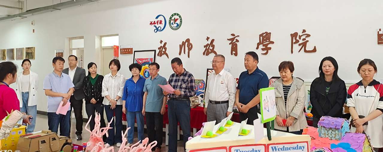 在6月6日下午,tyc8722太阳集团城教师教育文化节启动仪式暨第八届教师教育类专业学生教玩具暨废旧物品手工制作竞赛作品展开幕式举行。学院师生100余人参加了活动。约180余幅来自各师范教育专业学院的学生作品将在文科实训楼大厅展出20天。