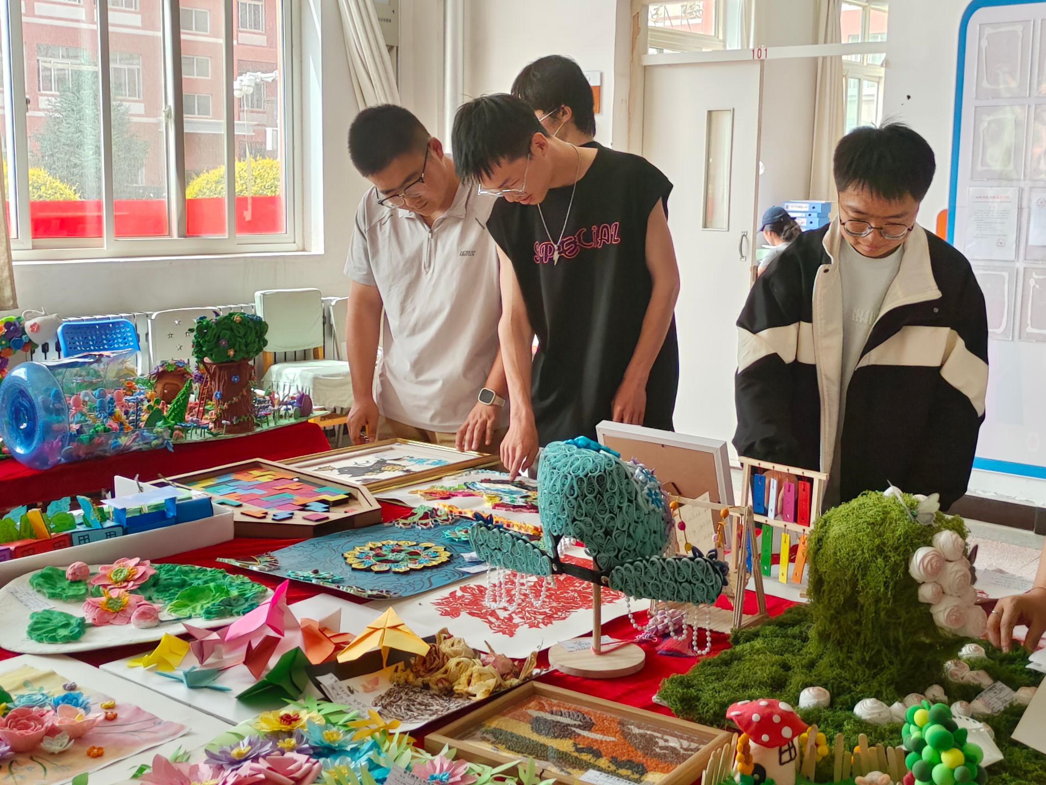 启动仪式结束后,老师们与同学们共同参观了手工大赛作品展览。展厅内,一件件独具匠心的作品令人眼前一亮。利用废旧纸箱制作的立体城堡,充满童趣的布艺玩偶,还有创意十足的科学实验教具等,充分展现了学生们的创意与巧思,以及变废为宝的环保理念。这些作品不仅体现了太阳集团tcy8722学生扎实的专业技能,更彰显了学院在艺术教育领域的卓越成果。此次竞赛展览的成功启动,将进一步激发学生的创作热情,为校园文化艺术发展注入新活力。