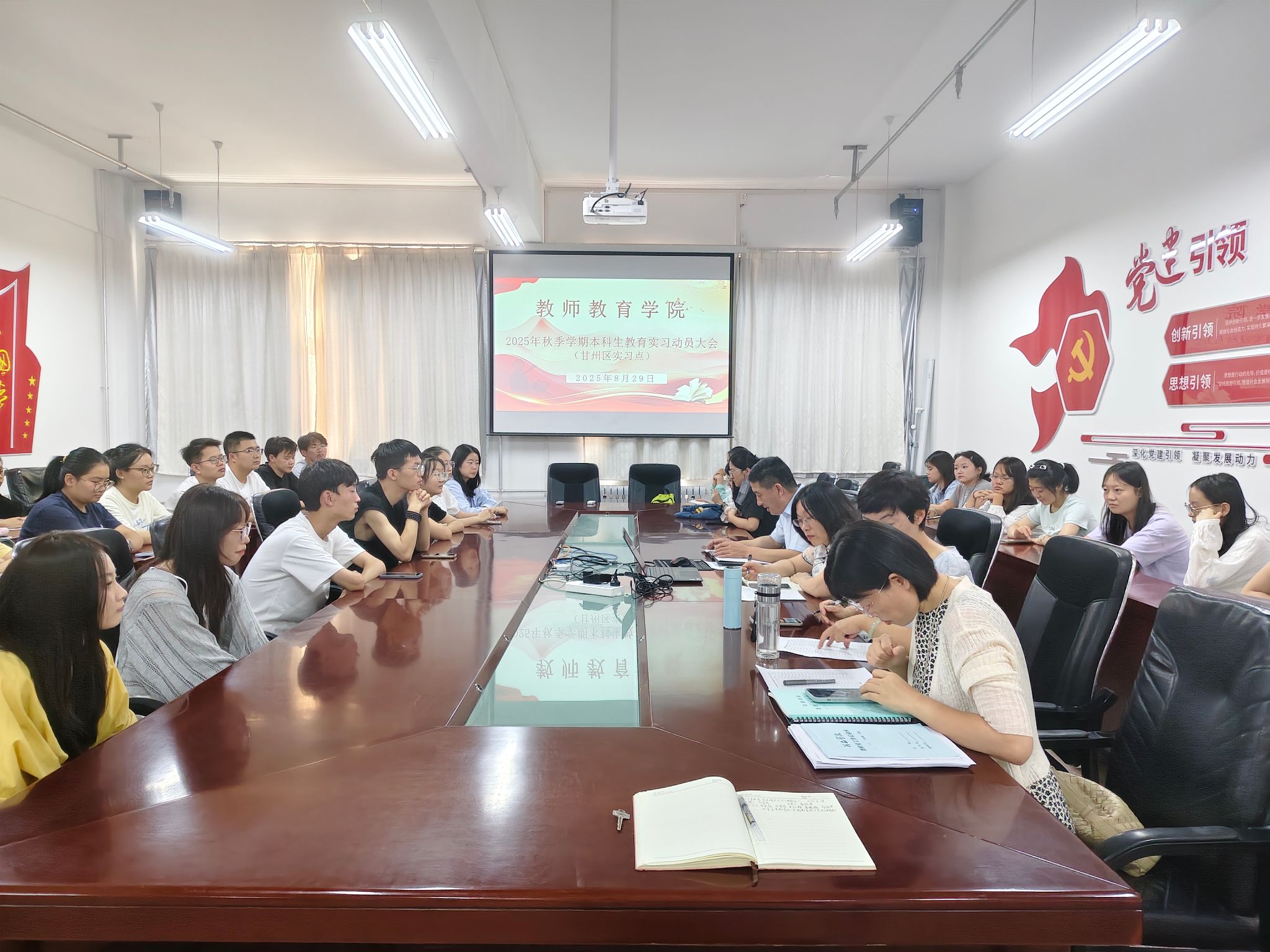 为确保2025年秋季学期本科生教育实习工作的顺利开展,提高学生对教育实习重要性的认识,学院于近期分别针对不同教育实习点的学生召开了教育实习动员会议。会议由学院负责人主持,小学教育教研室主任、学前教育教研室主任、实习带队教师、小学教育专业和学前教育专业2022级实习生参加了会议。