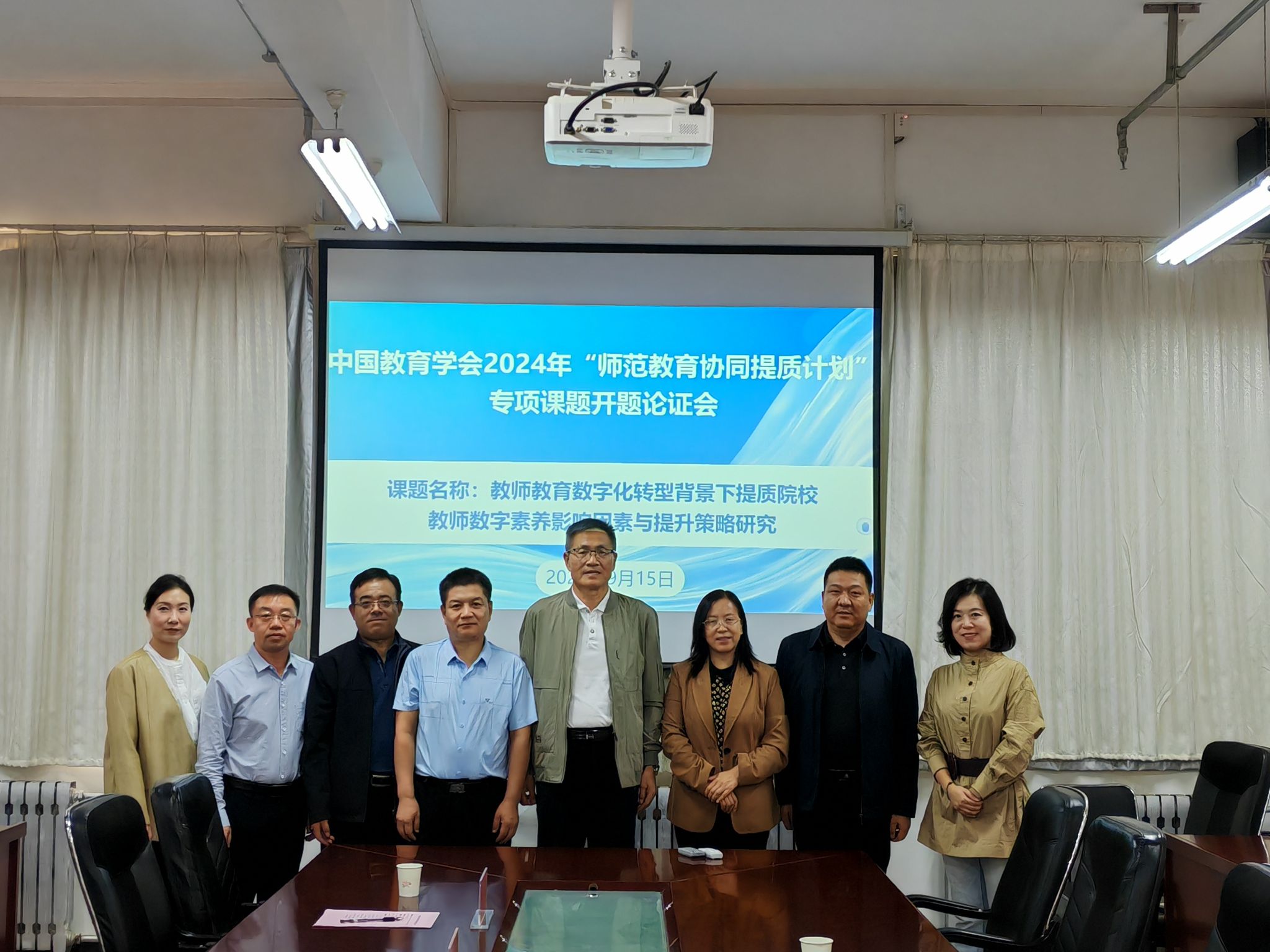 9月15日上午,tyc8722太阳集团城举行中国教育学会2024年“师范教育协同提质计划”专项重点课题《教师教育数字化转型背景下提质院校教师数字素养影响因素与提升策略研究》课题开题论证会。学院邀请中国教育学会学术委员靳建设教授、山东师范大学教育学部副部长冯永刚教授以及校内相关学科专家担任开题论证专家,学院负责人主持开题论证会。