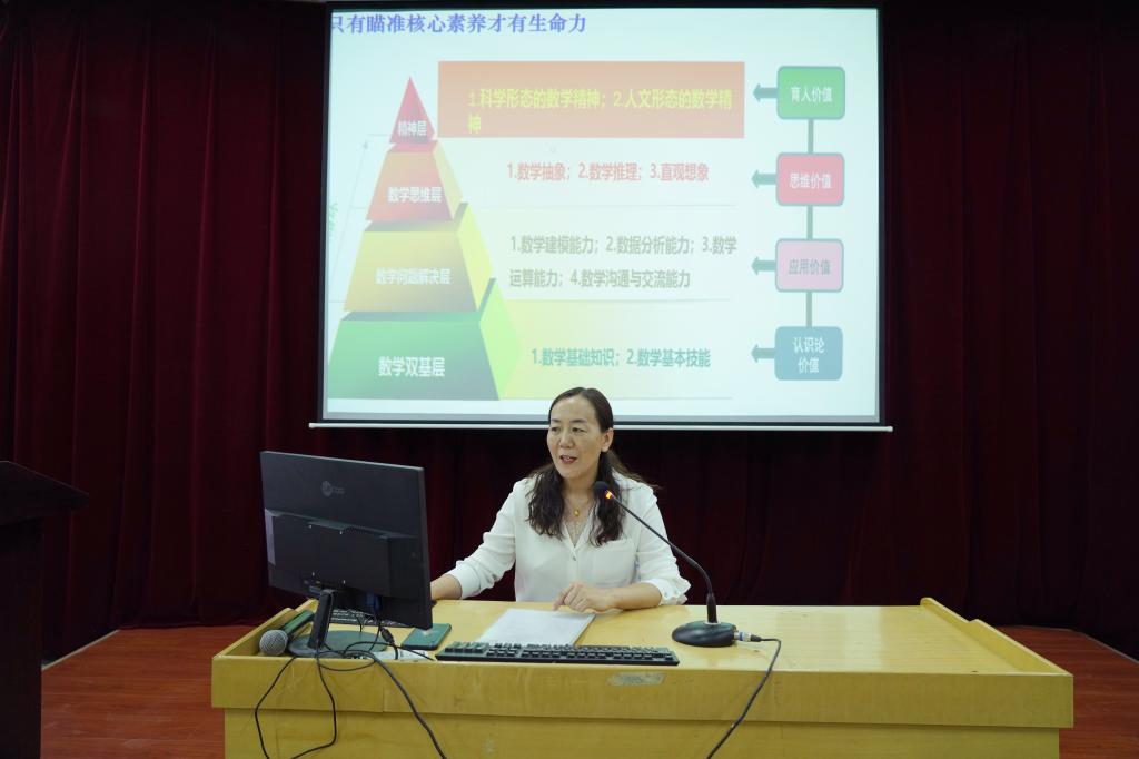 6月12日上午,甘州区北街小学书记、高级教师常晓红作了题为“例谈深度学习与整体单元教学”的教学报告。报告中,她表示,作为一名未来基础教育的人民教师,首先要做到立德树人,找到一个突破口,进行教学课程的改革;其次在落实和细化课程改革的过程中,要建立一个核心素养体系,只有瞄准核心素养才有生命力,才能进行深度学习,学生也会对学习主题全身心的积极参加、体验成功、获得发展;最后以“小数的意义和性质”为例,对怎样进行整体单元教学进行讲解。本次教学讲座让同学们对深度学习有了一个系统性、全面性的认识,对整体单元教学也有了一个深刻理解。