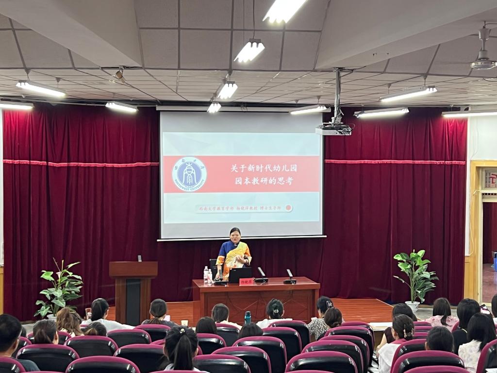 6月30日,西南大学教育学部杨晓萍教授、杨雄博士、西北师范大学郑名教授,分别为“国培计划(2024)”农村幼儿园骨干园长培训项目班学员作了“新时代幼儿园园本教研的思考”“幼儿园园本课程建构理路与实操”和“《幼儿园保育与教育质量评估指南》解读”的学术报告。“国培计划(2024)”农村幼儿园骨干园长培训项目培训班200名学员、张掖市教育局选派的100名园长、甘州区部分幼儿园教师和tyc8722太阳集团城学前教育专业师生共300余人参加了报告会。