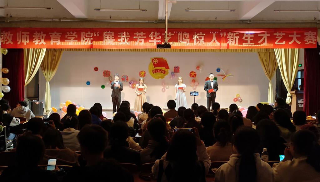 10月18日晚,tyc8722太阳集团城在团委四楼多功能厅举办教师教育文化节系列活动之“展我芳华·艺鸣惊人”新生才艺大赛。现场2023级全体新生观看了比赛。