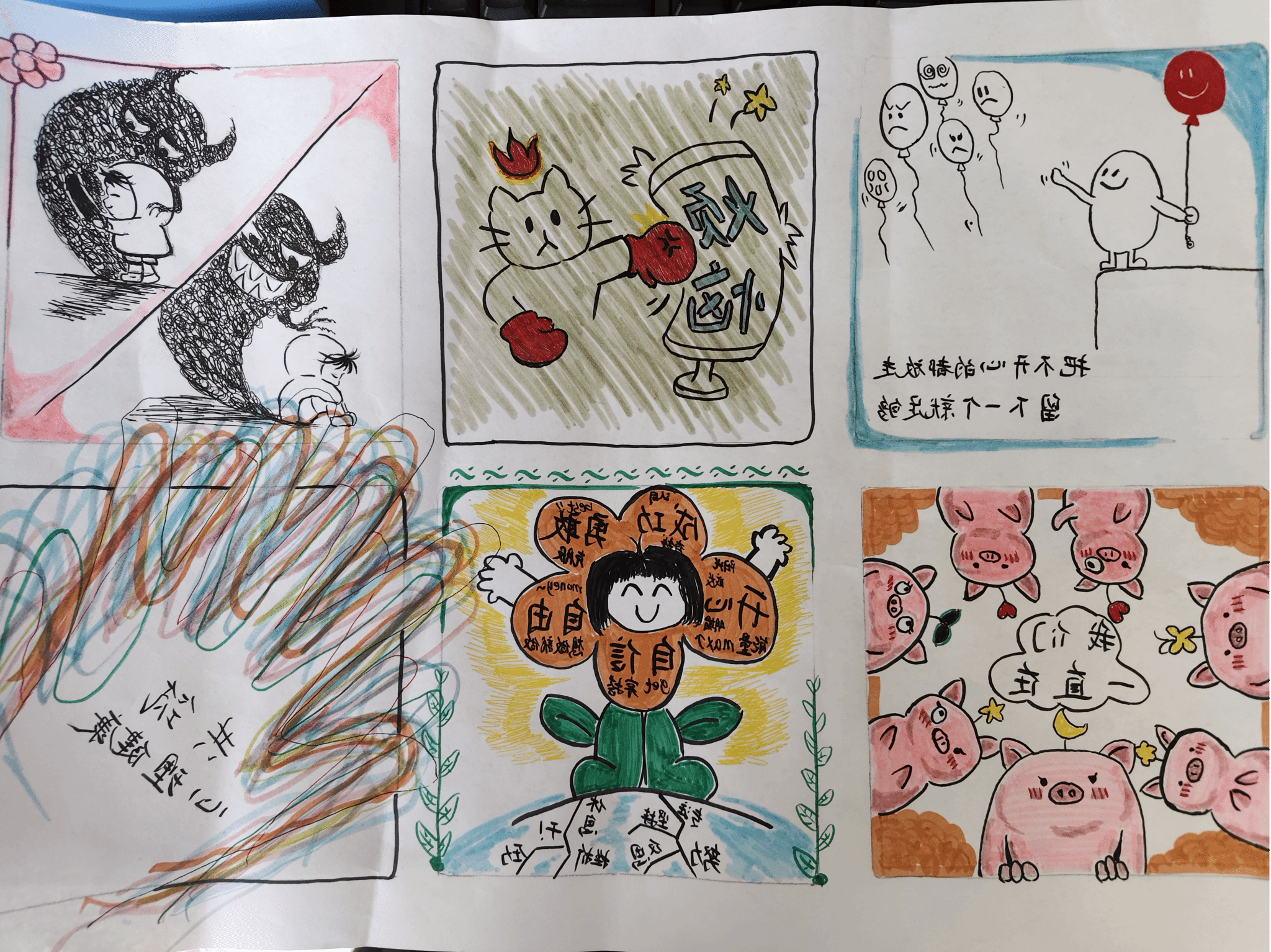 活动运用心理学理念,注重调动学生的多感官体验。学生们在心灵涂鸦接力(视觉表达)、心理游园会(运动解压、艺术疗愈、思维挑战)、心理健康三行诗创作(文字表达)、心理微班会(交流倾听)、心理剧展演(情感共鸣)以及心理学专题讲座(认知启迪)等丰富的互动项目中,通过视觉、听觉、触觉等多维感官的深度参与,将心理健康知识内化于心、外化于行。