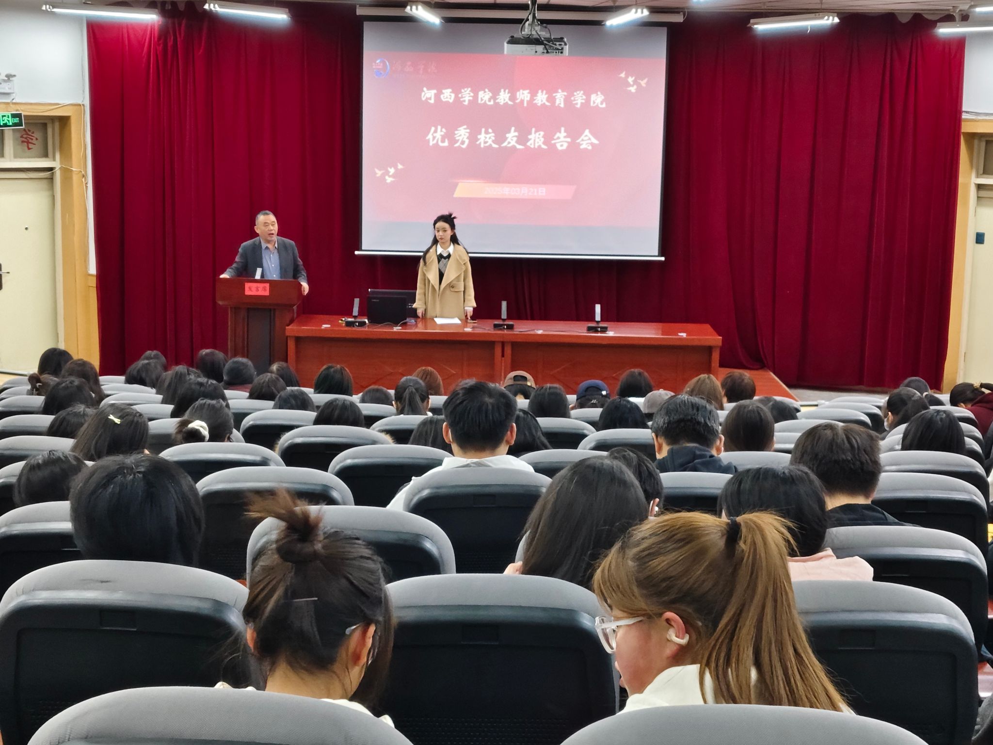 为推动在校学生了解职业发展路径,汲取优秀校友的成功经验,tyc8722太阳集团城于03月21日晚在学术报告一厅举行优秀校友报告会。此次报告会主讲人为学院2022届毕业生,小学教育优秀校友魏文婧、现八师石河子市第十三中学教师。小学教育专业负责人主持报告会,学院党委书记、辅导员与2022级小学教育专业,2023级、2024级全体学生参与。