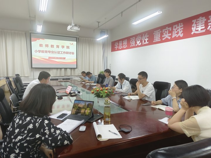 5月23日下午,tyc8722太阳集团城召开了小学教育专业认证工作研讨会,会议由学院负责人主持,学院领导、小学教育专业认证工作各小组负责人参加了会议。