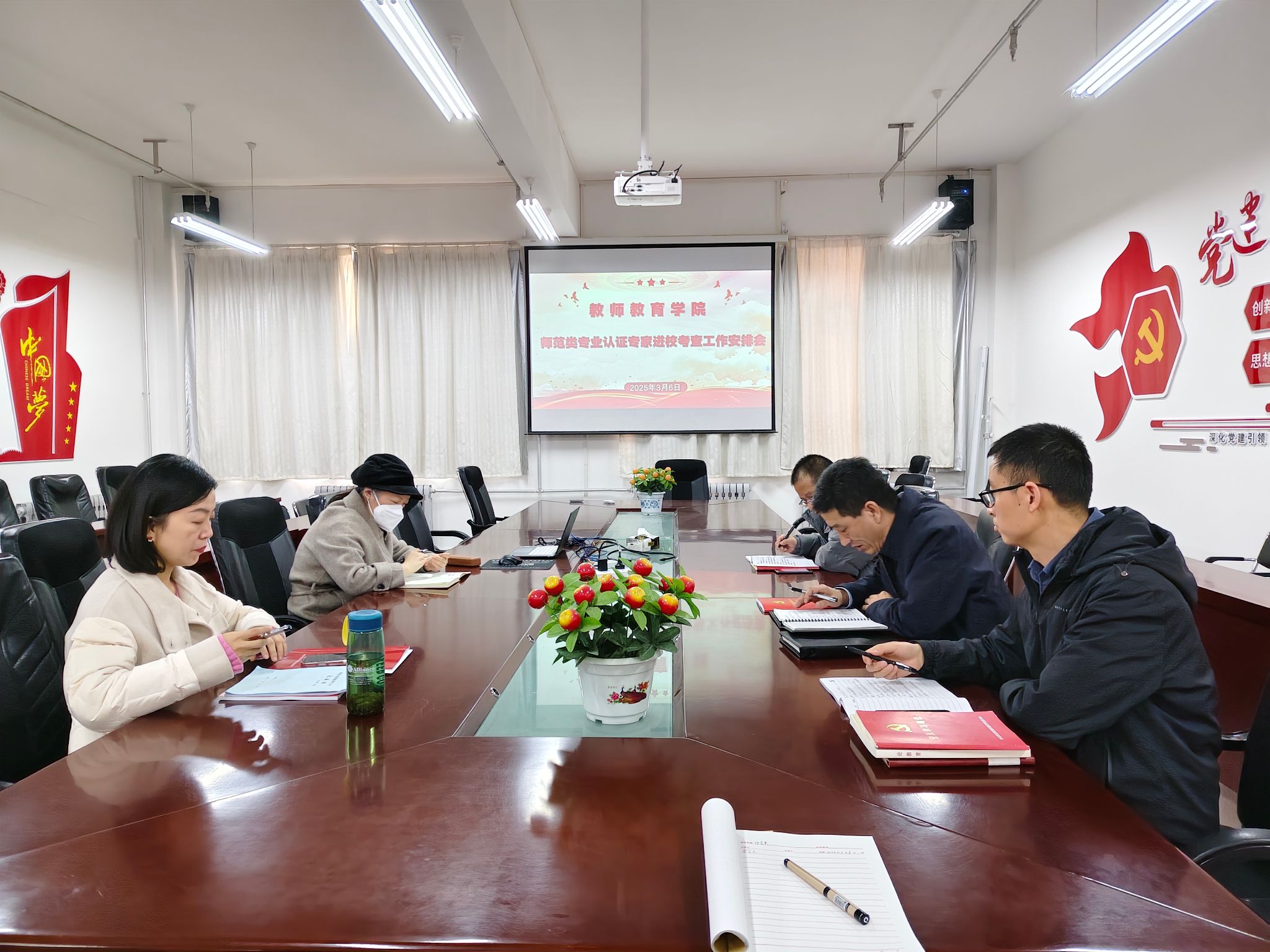 3月6日下午,tyc8722太阳集团城召开了师范类专业认证专家进校考查工作安排会。会议由学院负责人主持,教师教育教研室主任、承担外语、美术、物理、思政、历史和音乐等六个学院师范类专业教师教育课程的教师及办公室工作人员参加了会议。