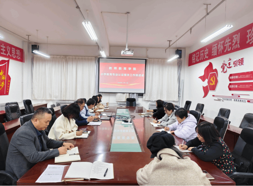 11月 11 日,学院召开小学教育专业认证整改工作推进会。会议由学院负责人主持,小学教育专业负责人及小学教育专业全体教师参加会议。